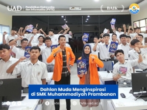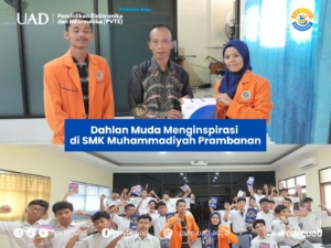 Sleman, 25 Oktober 2025 – Mahasiswa Program Studi Pendidikan Vokasional Teknik Elektronika (PVTE) Universitas Ahmad Dahlan (UAD) melaksanakan kegiatan Dahlan Muda Menginspirasi di SMK Muhammadiyah Prambanan pada Senin, 13 Oktober 2025. Kegiatan ini menghadirkan dua mahasiswa PVTE Sebagai Narasumber, Septia Amalia dan Ilham Pangestu, Mahasiswa bimbingan dari Bapak Kaprodi PVTE Barry Nur Setyanto, M.Pd.